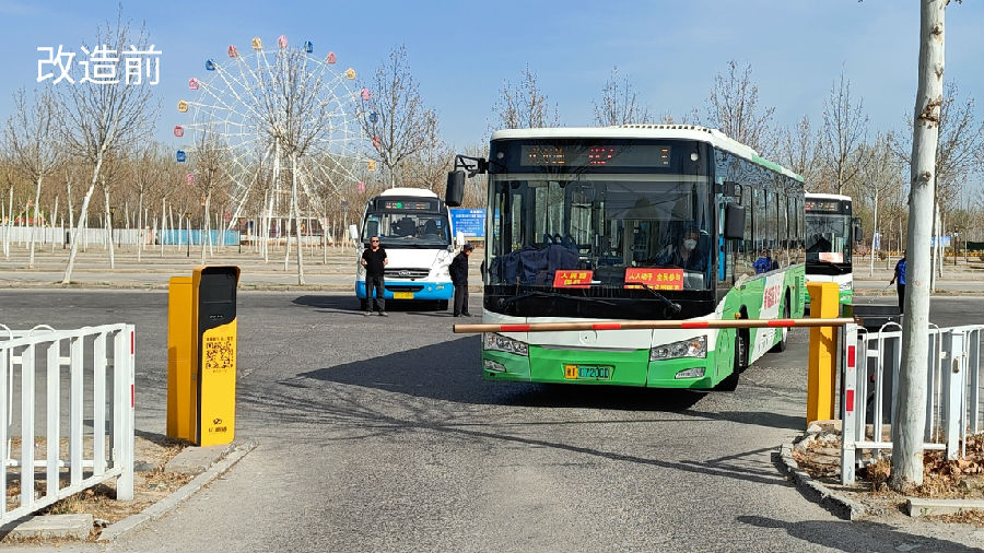 針對停車場出入口狹窄導(dǎo)致的車輛通行效率低的難題,在武邑縣住建局、衡水湖之城野生動物園管理有限公司等相關(guān)部門的大力支持下, 經(jīng)多次現(xiàn)場勘查后最終確定將出入口兩側(cè)護(hù)欄及綠化帶分別向南北兩側(cè)拓寬,顯著提升通行能力;同步安裝雙向智能抬桿系統(tǒng),實(shí)現(xiàn)公交車快速識別、無障礙進(jìn)出,有效緩解高峰時段擁堵問題。