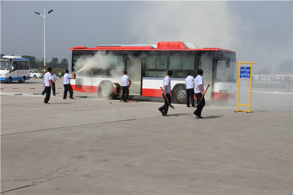 此次演練活動(dòng)由衡水市交通運(yùn)輸局主辦,衡水市公共交通總公司承辦,市公安局、市消防支隊(duì)協(xié)辦。事前各方參戰(zhàn)人員經(jīng)過(guò)精心策劃、周密籌備、結(jié)合公交實(shí)際情況,共設(shè)置了四個(gè)演練科目,分別為:一、在公交車(chē)上發(fā)現(xiàn)疑似爆炸物的應(yīng)急處理措施。二、在公交停車(chē)場(chǎng)內(nèi)發(fā)生火災(zāi)后的消防演練。三、在公交車(chē)上發(fā)生劫持人質(zhì)事件后的應(yīng)急處理措施。四、公交車(chē)在正常運(yùn)營(yíng)過(guò)程中突然起火后的消防演練。
