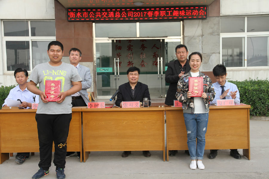 為了進一步增強公司凝聚力,豐富廣大員工的業(yè)余文化生活,經(jīng)過總公司工會的精心組織,充分準備,4月25日下午,總公司在一分公司停車場成功舉辦了2017年度職工趣味運動會。來自各分公司和機關(guān)科室的近150名職工分別參加了拔河、接力滾輪胎、跳長繩、袋鼠跳、自行車慢騎、個人跳繩、斗雞、綁腿跑、乒乓球、跳棋、踢毽子等11個趣味運動項目。比賽開始前,全體人員起立,共同演唱了“衡水公交之歌”。隨后,總經(jīng)理張雙義同志宣布比賽正式開始。經(jīng)過近3個小時的激烈角逐,全體參賽職工充分發(fā)揚敢于拼搏、互幫互助、尊重比賽、尊重裁判、尊重對手的優(yōu)良風格,圓滿完成了各項比賽任務(wù),賽出了風格、賽出了水平,取得了運動成績和精神文明的雙豐收。本次比賽4個團體項目共產(chǎn)生男、女各4個團體冠軍,7個個人項目各自決出前三名。在團體項目中,一分公司男子代表隊、二分公司女子代表隊分別獲得了團體拔河比賽的男女冠軍。三分公司男子代表隊、二分公司女子代表隊分別獲得接力滾輪胎項目的男女冠軍。二分公司男子代表隊、一分公司女子代表隊分別獲得袋鼠跳接力項目的男女冠軍。二分公司男子代表隊、機關(guān)女子代表隊分別獲得團體跳長繩項目的男女冠軍。在個人項目中,機關(guān)代表隊杜波同志憑借著超強的個人平衡和騎行技術(shù)獲得了自行車慢騎個人項目的第一名;在個人跳繩比賽中,二分公司代表隊的王猛同志憑借著超快的動作獲得了第一名的好成績。在綁腿跑個人賽項目中杜波和李輝同志憑借著默契的配合獲得了第一名的好成績。在斗雞個人賽項目中陳毅同志憑借著靈活的身手和超強的體力分別獲得了第一名的好成績。在跳棋、乒乓球、踢毽子的比賽中高靜周、宋建申、谷玉分別獲得了第一名的好成績?偣救w領(lǐng)導班子成員在比賽現(xiàn)場為各路選手加油助威。比賽結(jié)束后,工會主席、副總經(jīng)理李海江同志主持了頒獎儀式,總公司領(lǐng)導為獲獎的團體和個人進行了頒獎。最后,總經(jīng)理張雙義同志作了總結(jié)發(fā)言。這次運動會上,運動員強健的體魄、頑強的毅力和高超的競技水平,給大家留下了深刻的印象;各代表隊真正賽出了風格、賽出了激情;啦啦隊熱情助威、文明加油;裁判員嚴格計時記錄,公平裁判;工作人員認真負責,辛勤工作,保證了各項賽事順利進行。通過運動會的舉辦,進一步加強了總公司精神文明和企業(yè)文化建設(shè)工作,提高了全體職工的凝聚力、向心力,將健康和積極向上的企業(yè)精神傳遞給了每位員工,凝聚起了員工的巨大力量,激勵總公司全體職工,以更加昂揚的斗志、健康的體魄積極投身到公交事業(yè)中去。