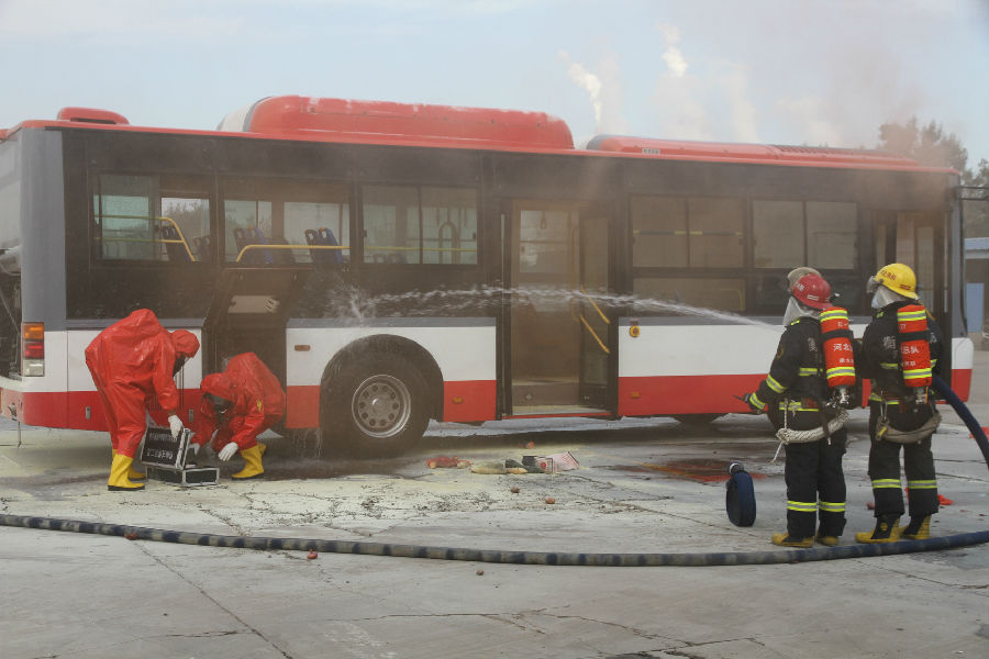 本次演練,旨在強(qiáng)化公交駕駛員安全防范意識和提高應(yīng)對突發(fā)事件的應(yīng)急處置能力,最大限度地減少火災(zāi)、恐怖暴力事件造成的危害,保護(hù)人民群眾生命財(cái)產(chǎn)安全。演練活動共設(shè)置了三個演練科目,即在公交車上發(fā)生劫持人質(zhì)事件、在公交車上發(fā)現(xiàn)疑似爆炸物及公交車在正常運(yùn)營中突然起火后的各種應(yīng)急處理措施。