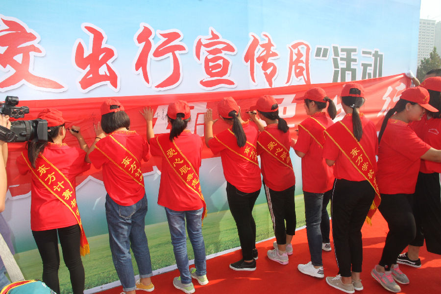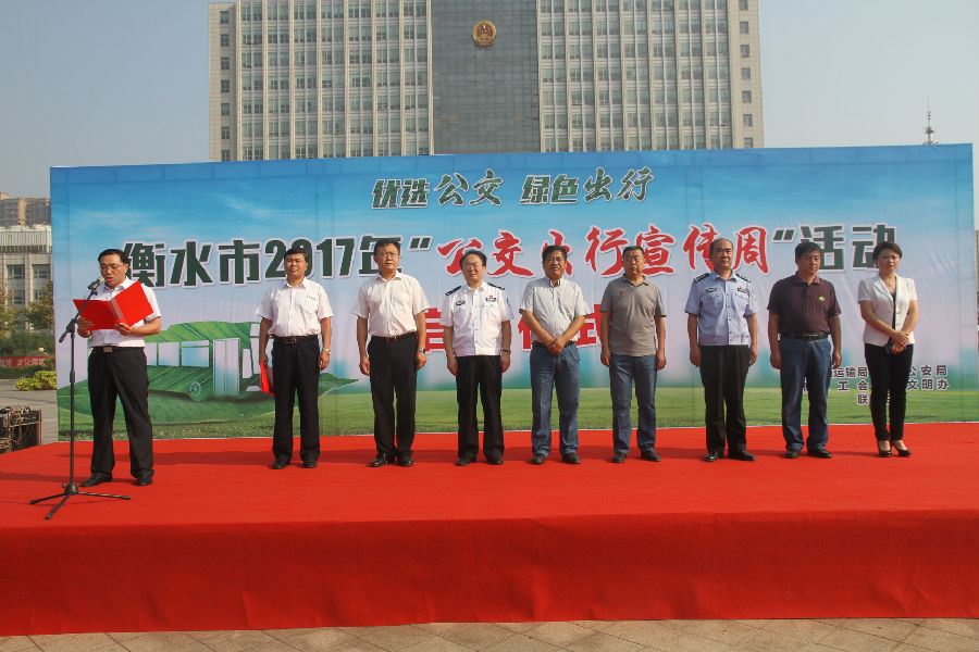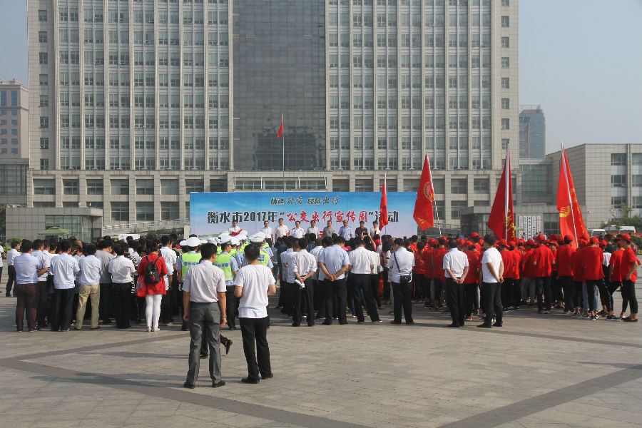 18日上午,市交通運輸局、市公安局、市總工會、市文明辦,在市政府廣場聯(lián)合舉行了2017年“公交出行宣傳周”活動啟動儀式。市交通運輸局方隊、市公安局交警支隊方隊、市總工會方隊、市文明辦組織的方隊、市公交總公司方隊、市愛心志愿者協(xié)會方隊、中國聯(lián)通衡水分公司方隊列隊參加。啟動儀式后,“優(yōu)選公交、綠色出行”萬人簽名活動首批人員參加了簽名活動。