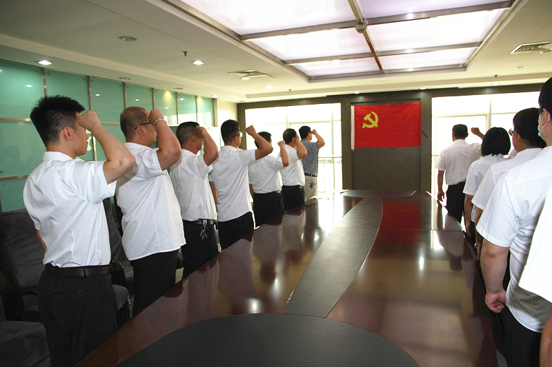 首先,黨總支部書記張雙義同志帶領(lǐng)與會黨員代表,面對黨旗,舉起右手,緊握拳頭,共同重溫入黨誓詞。