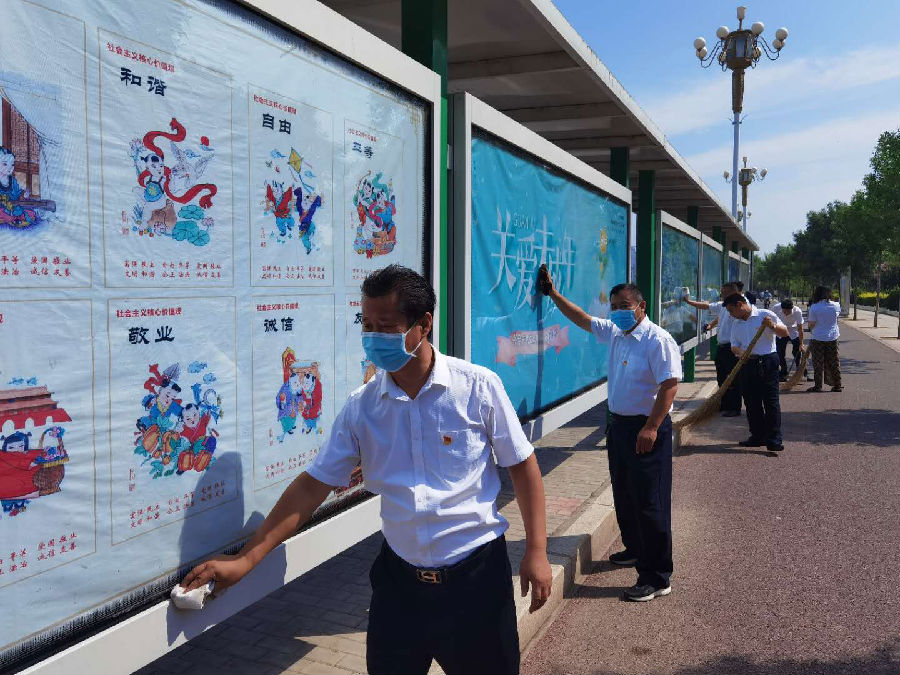 宣誓后,黨員志愿者奔赴路口和公交站亭進(jìn)行了交通疏導(dǎo)、公交站亭清理等志愿服務(wù)活動。