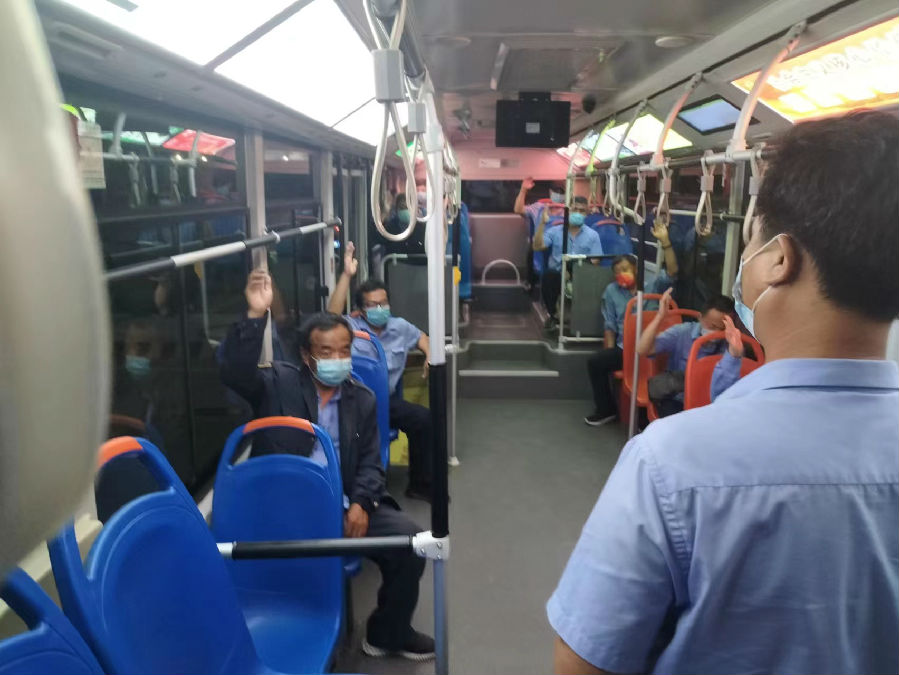 “自2020年新冠病毒漫延全國。在總公司正確領(lǐng)導(dǎo)下,制定并實(shí)施一系列防控措施,場站24小時(shí)封閉管理,進(jìn)出場人員戴口罩、測溫、驗(yàn)雙碼;23路一直以來認(rèn)真執(zhí)行各項(xiàng)防疫措施,乘客上車戴口罩、測溫、驗(yàn)雙碼、掃一車一碼,車輛一趟一消毒、通風(fēng),為市民安全出行保駕護(hù)航。