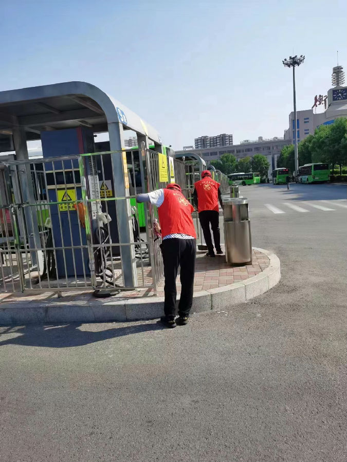 志愿者在車站開展清掃垃圾、撿拾煙頭、擦洗場站圍欄等活動,進(jìn)一步提升城市文明窗口形象