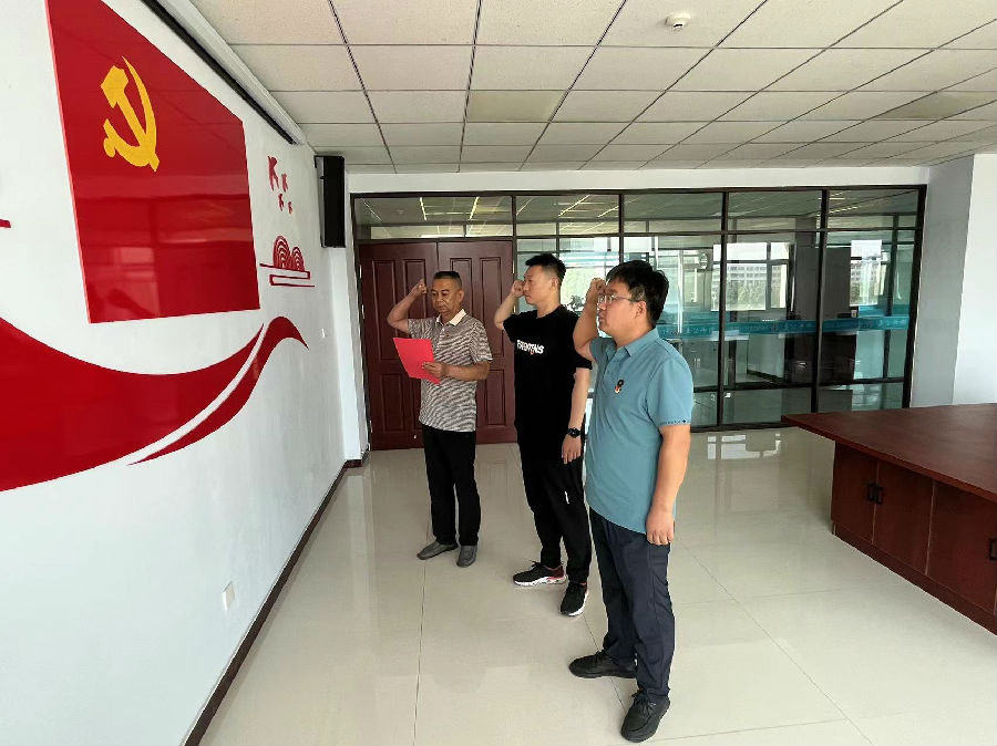 重溫入黨誓詞,堅(jiān)定理想信念。“我志愿加入中國(guó)共產(chǎn)黨,擁護(hù)黨的綱領(lǐng),遵守黨的章程,履行黨員義務(wù),執(zhí)行黨的決定……”面向鮮紅的中國(guó)共產(chǎn)黨黨旗,黨員們?cè)僖淮闻e起右拳,用鏗鏘有力的聲音重溫入黨誓詞,回顧對(duì)黨和人民的承諾。錚錚誓言讓每一位黨員的心靈再次接受洗禮,進(jìn)一步堅(jiān)定理想信念。